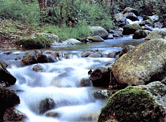 Rostrot leuchten die nackten Stämme geschälter Korkeichen. Mimosen und Mandelbäume, Rhododendron und Pfingstrosen weben bunte Tupfer in die grüne Landschaft. Hier wuchern Heidekraut und meterhoher Farn, wachsen Kastanien und wilde Azaleen, sind romantische Schluchten und munter plätschernde Bäche zu entdecken.
