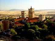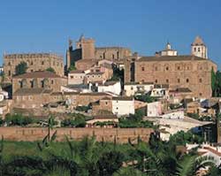 Extremadura besteht aus den Provinzen Bajadoz und Cáceres. Kaum 270 Kilometer liegen zwischen dem nördlichsten und südlichsten Punkt, dennoch gibt es auf dieser kurzen Strecke beeindruckende Schätze aus der Renaissance und dem Barock zu bewundern. Man kann in römischen Amphitheatern auch heute noch Vorstellungen genießen oder sich auf den Spuren der Tempelritter bewegen. Bei einem längeren Aufenthalt lohnt es sich allemal an verschiedenen Orten Station zu machen, um die mittelalterlichen Städte oder die Natur der Provinz zu erkunden. Denn Extremadura schließt auch die grünen, fruchtbaren Täler des Valle de Jerte und Valle de la Vera mit ein, die Ebenen mit ihrem Bestand aus Weiden und Obstbäumen, sowie den Monfragüe Nationalpark, in dem seltene Tierarten beheimatet sind.